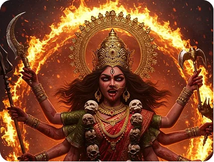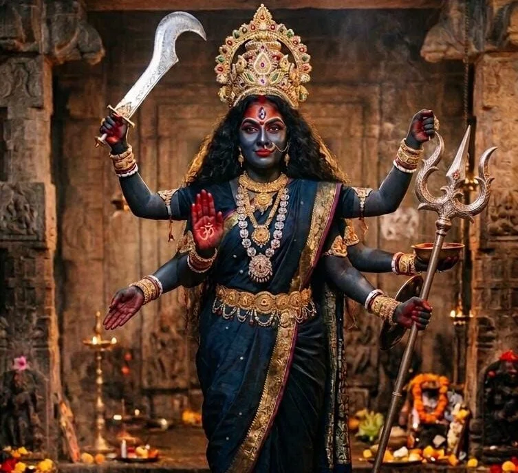 Kali Mata Aarti is a devotional ritual expressed through song and offerings. Traditionally performed during Kali Puja and Durga Puja, this ceremony is more than a ritual—it’s an experience. Lighting lamps, offering red flowers and sweets, and singing the Aarti deepen your connection to Kali’s divine energy.
