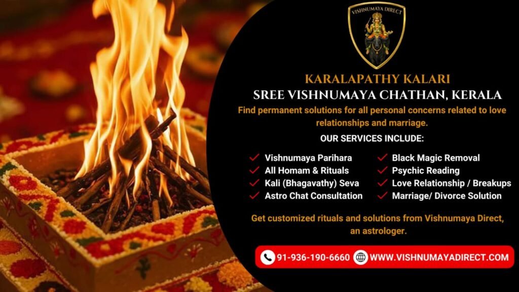 Experience the powerful rituals of Vishnumaya Kuttichathan for resolving relationship breakups and marital challenges at Vishnumaya Direct Solutions. We design our transformative, real-time rituals to assist you in overcoming failures and conflicts that disrupt your life. We specialize in effective black magic removal and voodoo protection. READ MORE